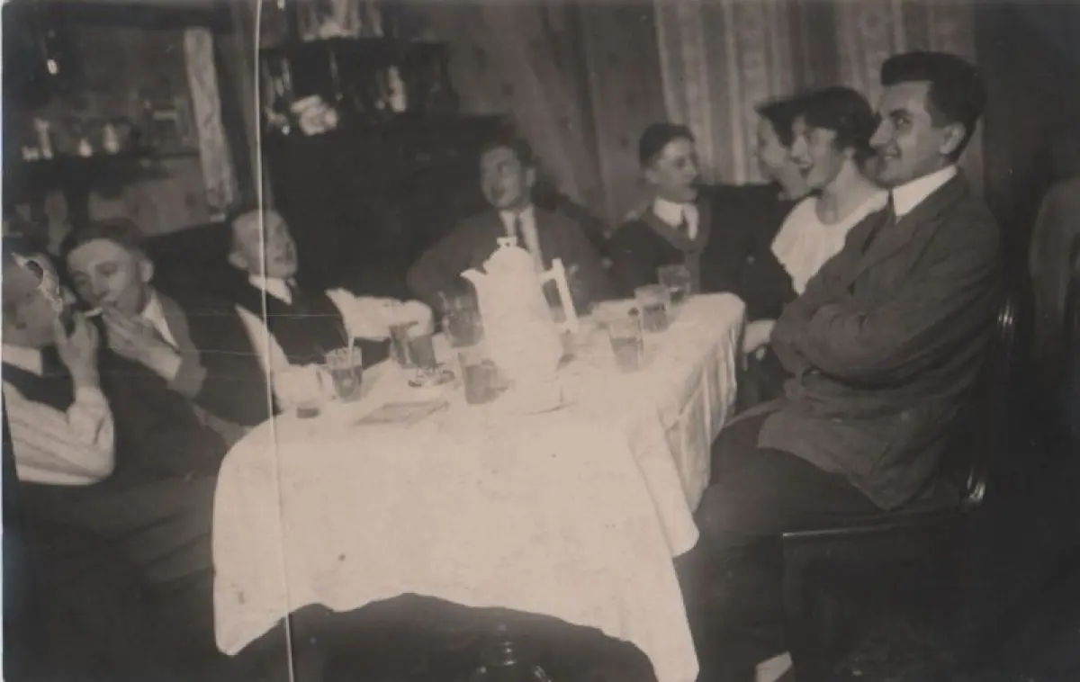 Feiernde Runde am Tisch