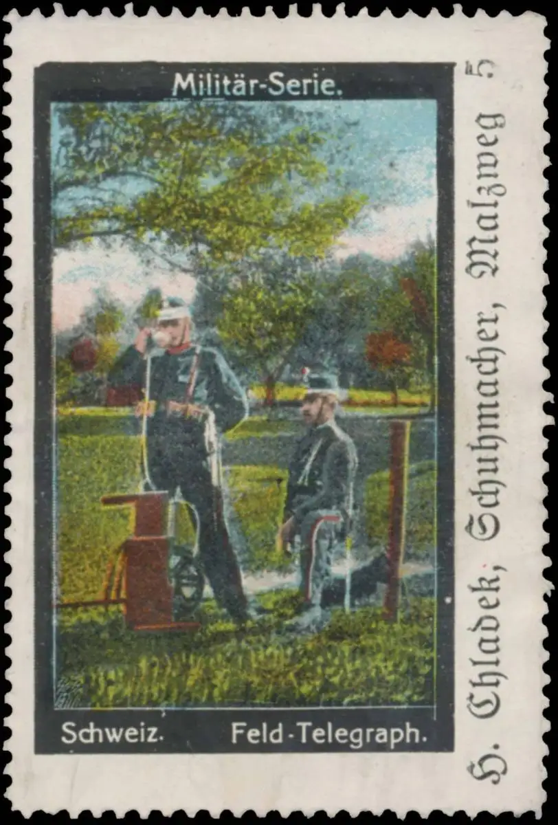 Militär-Serie, Telegrafie, Größe/Zustand: 6x4 , guter Zustand, Original alte Reklamemarke die seinerzeit für die Werbung benutzt wurde