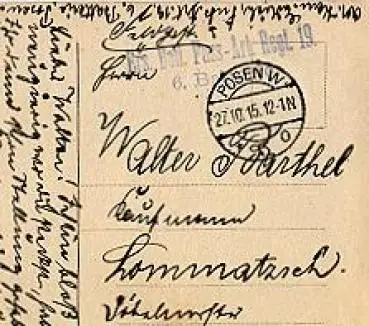 Feldpost 1.WK Ersatz-Bataillon Fuss-Artillerie Regiment Nr. 19, 6. Batterie o 27.10.1915