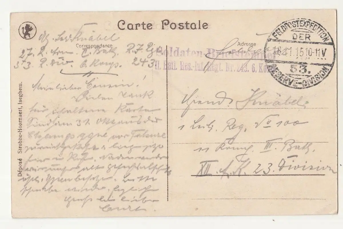 Originale, gelaufene ( 1915 ) Ansichtskarte.