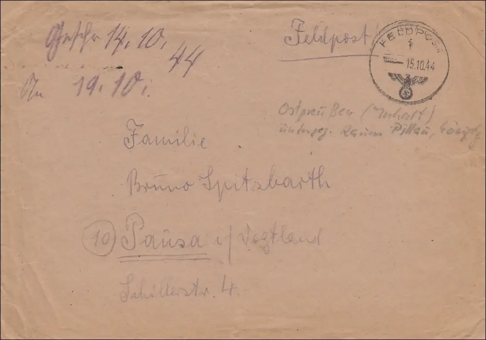 Feldpost II. Weltkrieg: 1944 FPNr. 28400 nach Pausa,