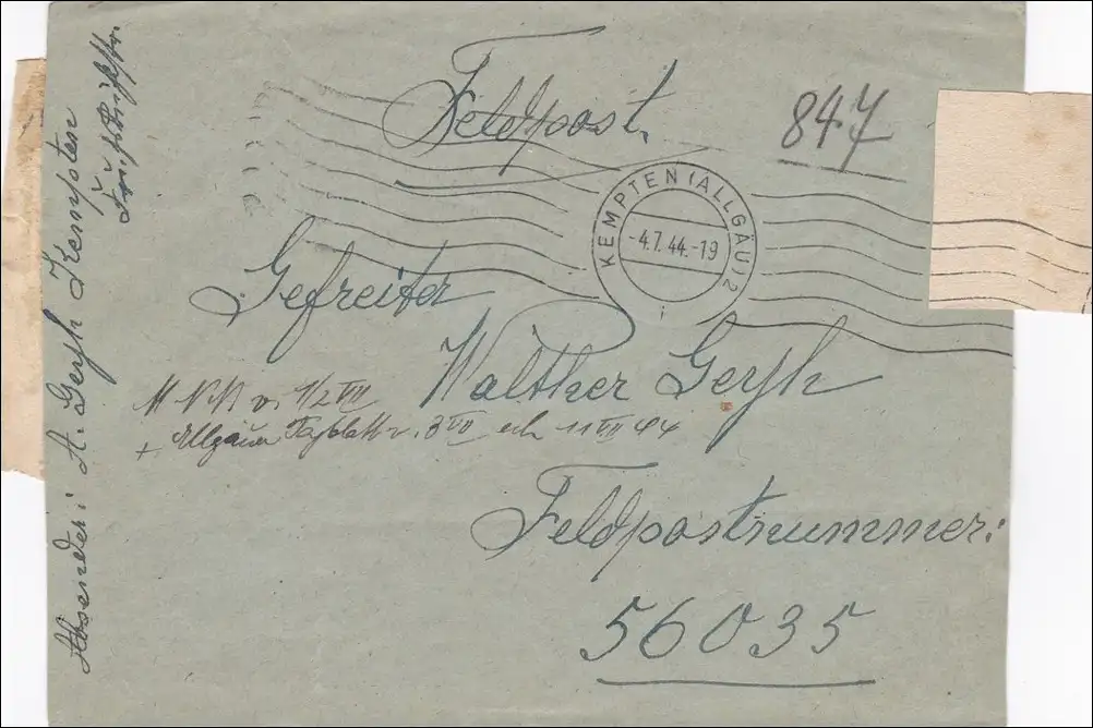 Feldpost II. Weltkrieg: Brief aus Kempten 1944 an FPNr. 56 035