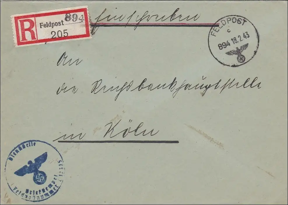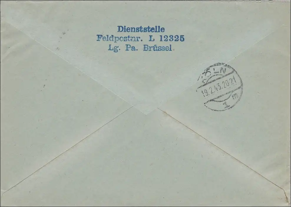 Feldpost II. Weltkrieg: Einschreiben Brüssel 1943 nach Köln