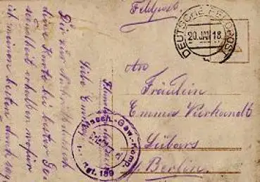 Feldpost Landwehr-Maschinen-Gewehr-Kompanie Regiment 189 o 20.1.1918