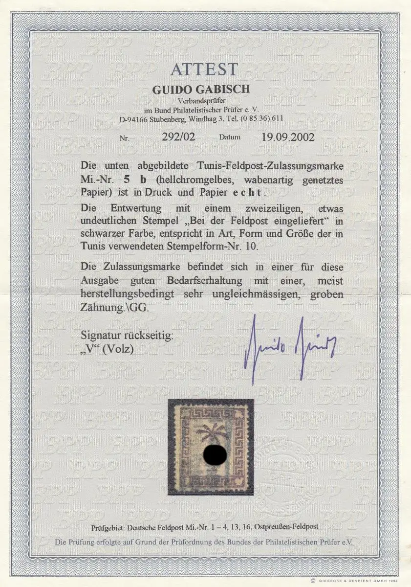 Feldpost MiNr. 5b, gestempelt "Bei Feldpost eingeliefert", BPP Attest