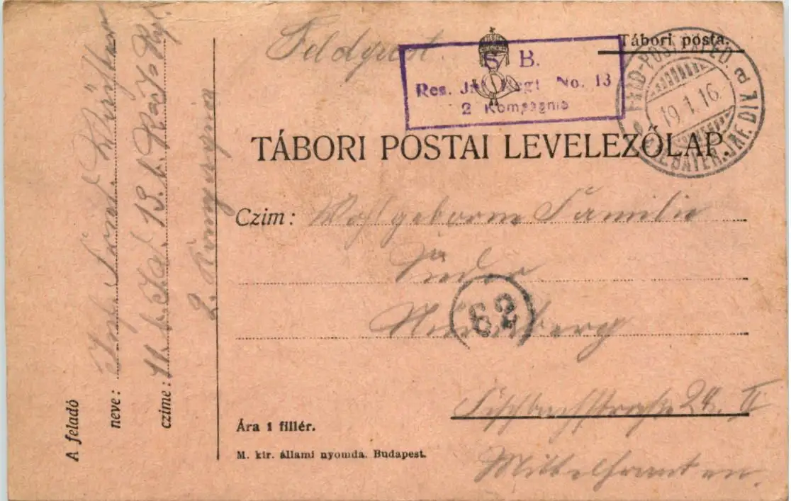 Feldpost Res. Inf. Regiment 19 -651032