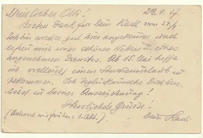 o. O. 1917. ca. 9 x 14 cm. In gutem Zustand.