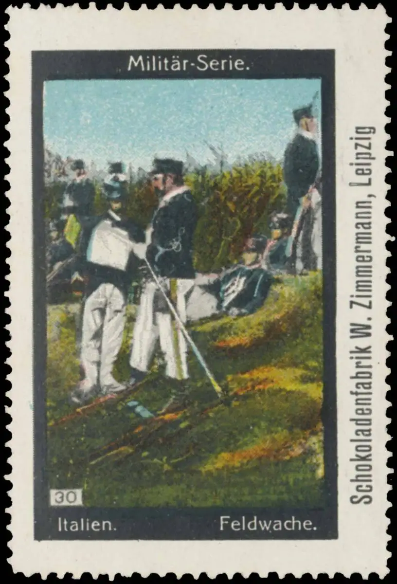 Militär-Serie, Bild 30, Schokolade, Größe/Zustand: 6x4 , guter Zustand, Original alte Reklamemarke die seinerzeit für die Werbung benutzt wurde