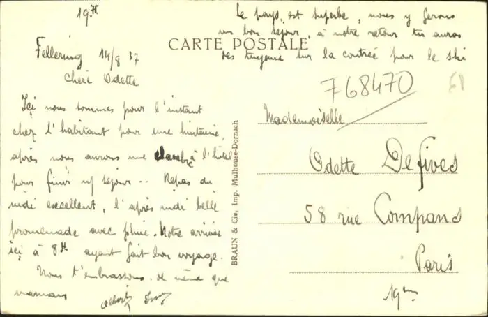 Fellering Fellering * Fellering postalisch nicht gelaufen 1937 Alte Ansichtskarte Postkarte