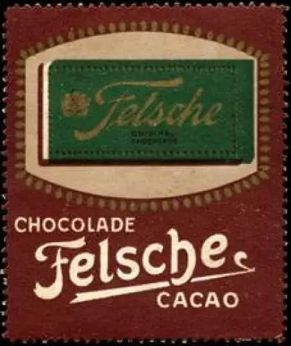 Chocolade Felsche Cacao, Kakao, Schokolade, Größe/Zustand: 6x5 , guter Zustand, Original alte Reklamemarke die seinerzeit für die Werbung benutzt wurde