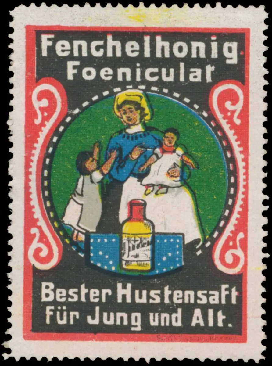 Foeniculat, bester Hustensaft für Jung und Alt, Kinder, Honig, Größe/Zustand: 6x4 , guter Zustand, Original alte Reklamemarke die seinerzeit für die Werbung benutzt wurde