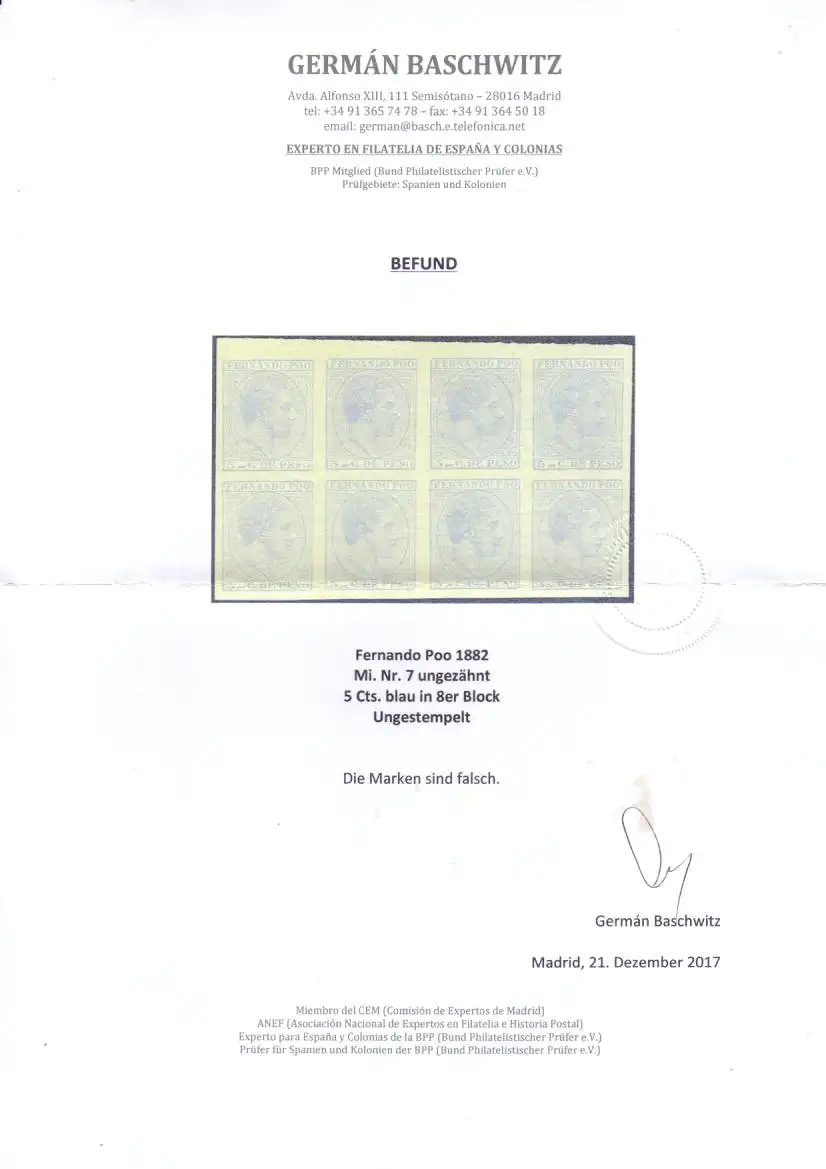 Fernando Poo 1882 Nr 7 Postfrisch / **