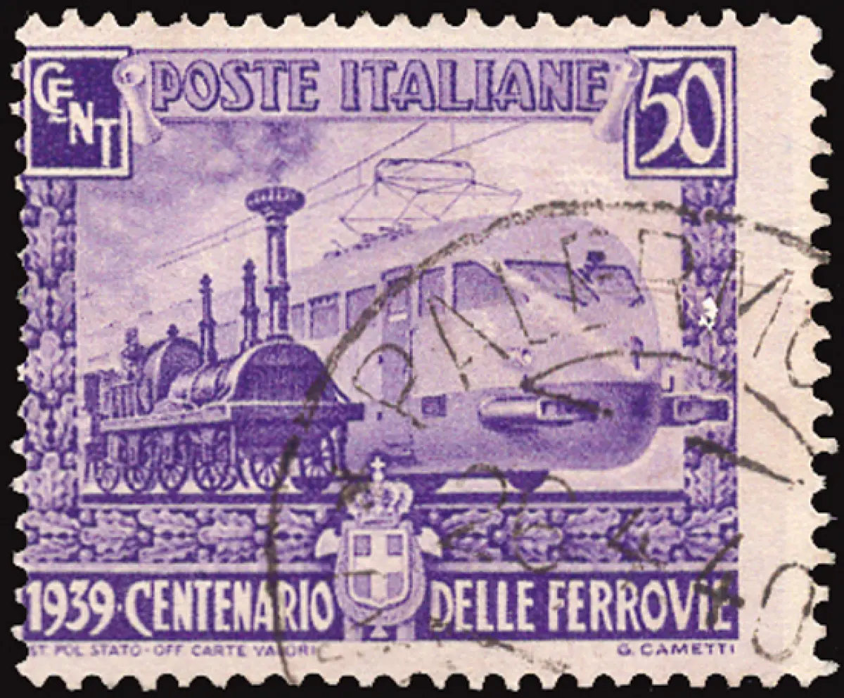 Gebraucht - Ferrovie Cent. 50 n. 450b Vertikalverzahnung stark nach rechts verschoben - Ungewöhnlich - Kat. euro 90 Cod. 189/17