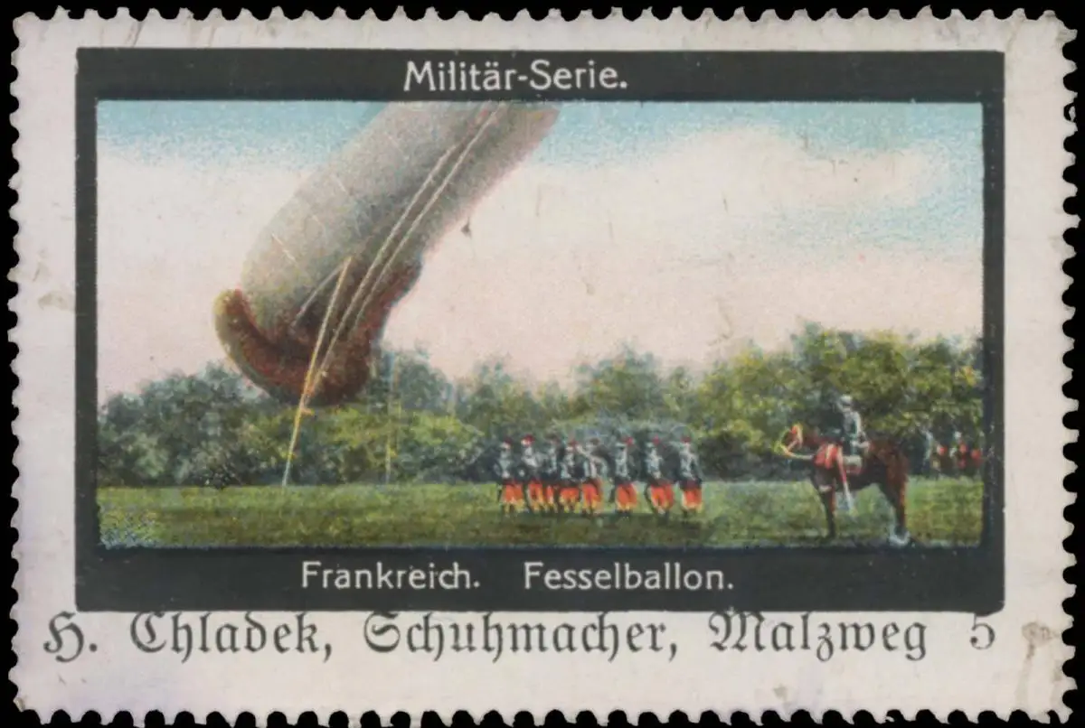 Militär-Serie, Ballon, Flugmarke , Größe/Zustand: 4x6 , leicht beschädigt, Original alte Reklamemarke die seinerzeit für die Werbung benutzt wurde