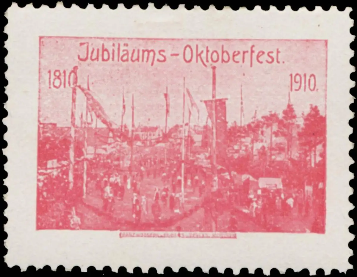 Jubiläums Oktoberfest, Druck: Frans Joseph Huber, München, Größe/Zustand: 3x4 , guter Zustand, Original alte Reklamemarke die seinerzeit für die Werbung benutzt wurde