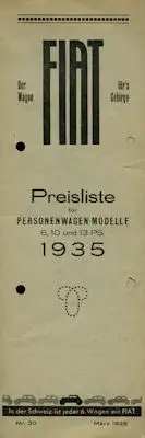 Fiat Preisliste Schweiz Nr. 30 1935