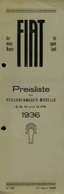 Fiat Preisliste Schweiz Nr. 33 1936