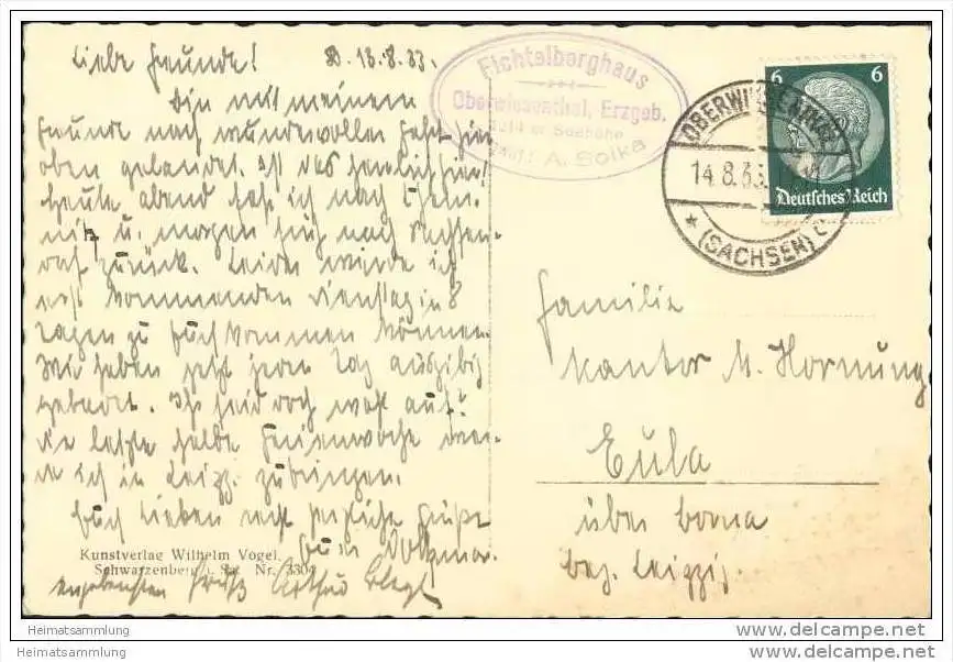Fichtelberg - Schwebebahn - mit Oberwiesenthal - Verlag Wilhelm Vogel Schwarzenberg - Karte ist leicht fleckig (E3491) gel. 1933