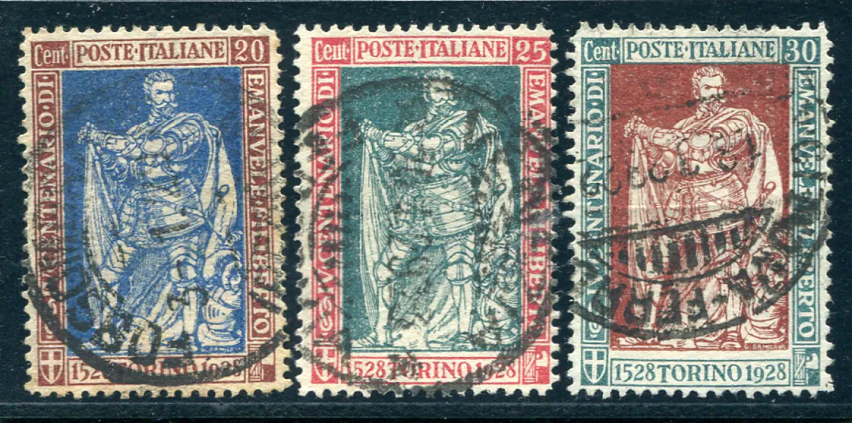 Filiberto Cent. 20, 25 und 30 n. 230/232 drei gezackte Werte 13,3/4 von sehr guter Qualität und Zentrierung - - Originalringe - Kat. euro 560 Cod. 24/15