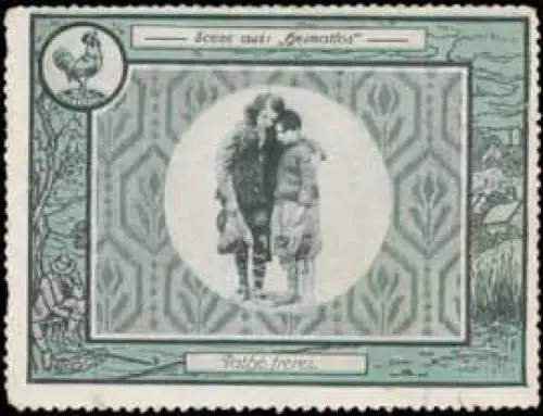 Scene, Größe/Zustand: 5x7 , beschädigt, Original alte Reklamemarke die seinerzeit für die Werbung benutzt wurde