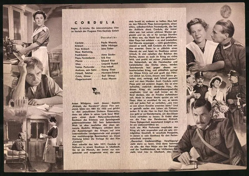 Filmprogramm PFI, Cordula, Paula Wessely, Attila Hörbiger, Regie: Gustav Ucicky