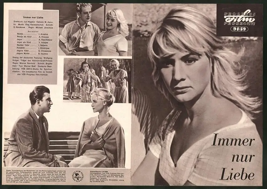 Filmprogramm PFP Nr. 94 /59, Immer nur Liebe, I. Arepina, A. Firsowa, Regie: Michael Jerschow