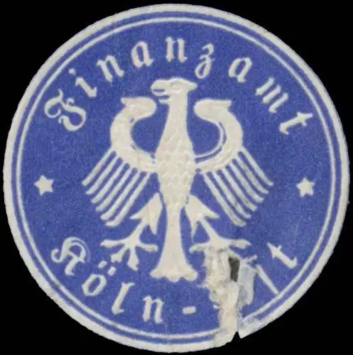 blau, weiß, geprägt, Größe/Zustand: 3 , beschädigt, Original Verschluss-Siegelmarke aus Papier welche früher von Behörden, Firmen etc. zum Versiegeln der Briefe benutzt wurden