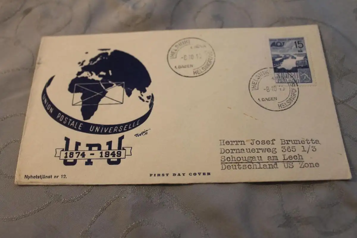 Finnland 1949; 75 Jahre UPU - Weltpostverein; FDC