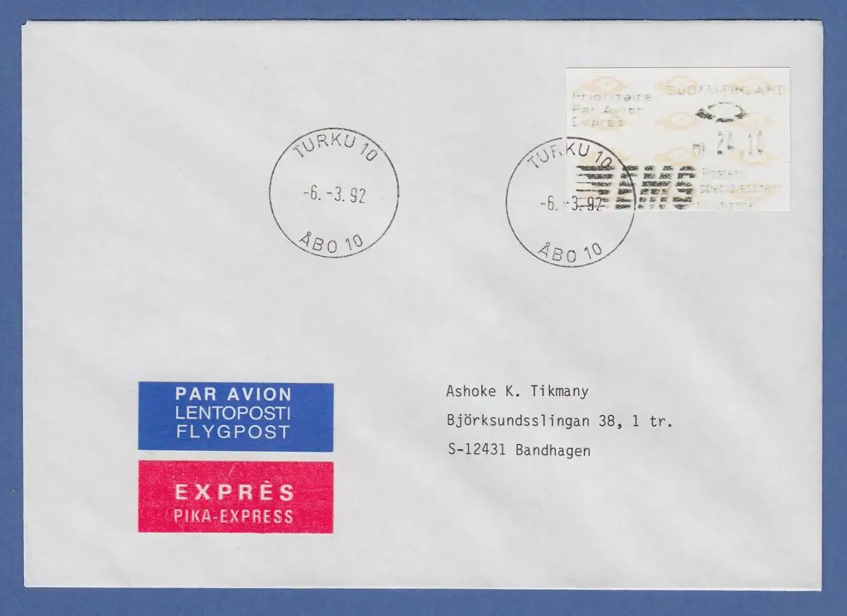 Finnland 1992 Dassault-ATM 2.Ausgabe Turku EMS Mi.-Nr. 12.2 Z7 auf Expr.-Brief