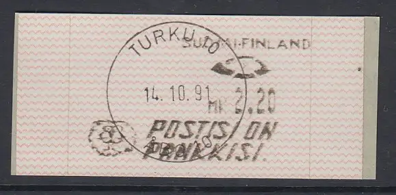 ATM mit Ersttags-Abnstempelung TURKU 14.10.91.