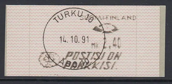Finnland Dassault-ATM 1.Ausgabe Turku Mi.-Nr. 10.2 Wert 2,40 ohne Zudruck ET-O