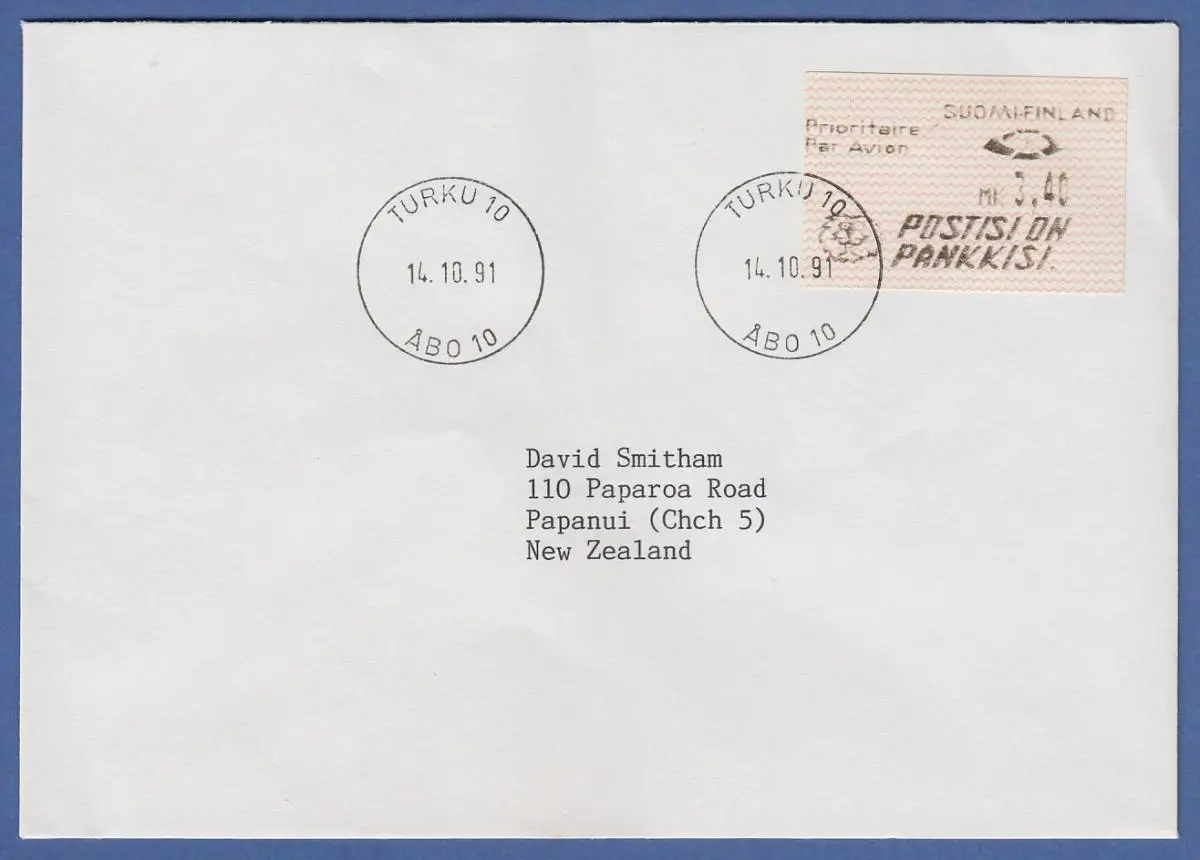Finnland Dassault-ATM 1.Ausgabe Turku Mi.-Nr 10.2 Wert 3,40 auf FDC -> NZL