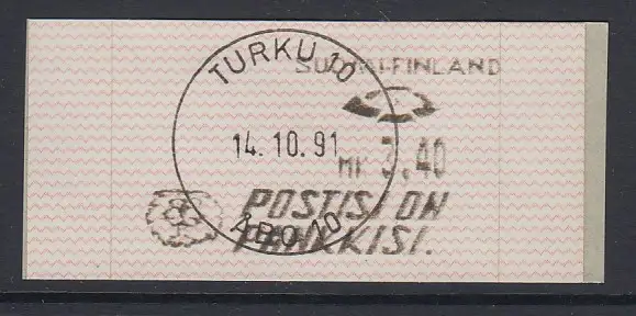 Finnland Dassault-ATM 1.Ausgabe Turku Mi.-Nr. 10.2 Wert 3,40 ohne Zudruck ET-O