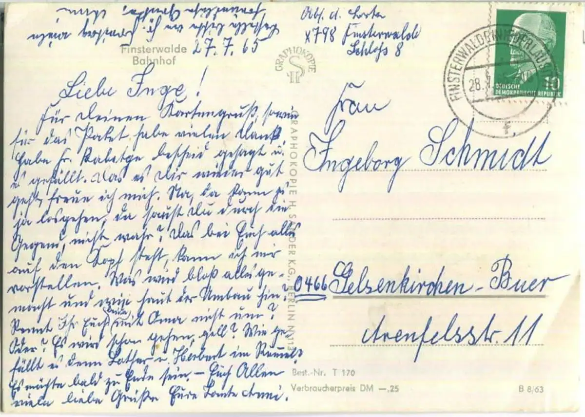 Finsterwalde - Bahnhof - Verlag H. Sander Berlin - kleiner Eckknick oben rechts (E93239) gel. 1965