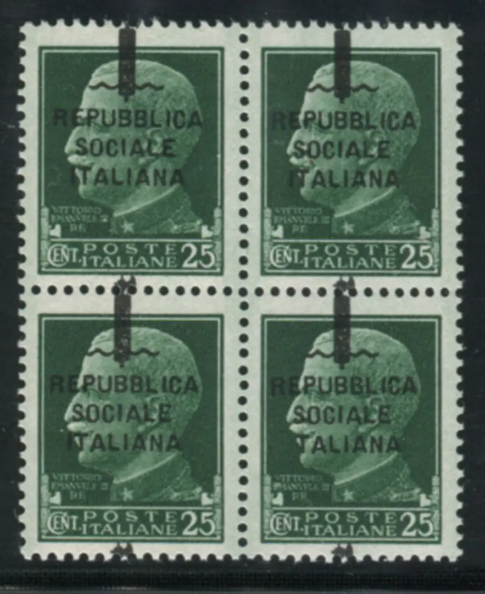 Vollgummi - Firenze Cent. 25 Band Nr. 491 Viertel oben teilweise offen mit stark nach oben verschobenem Aufdruck (zu Pferd) - ein Exemplar mit typischem Taliana-Typografiefehler der Position 27 - Interessant für Fachleute - Gebraucht Code 295/3