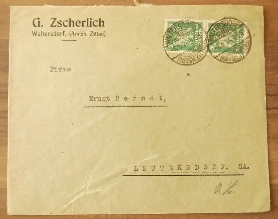 Firmenbrief G Zscherlich Waltersdorf DR 1924