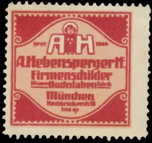 Hochbrückenstraße 18, Münchner Kindl, Größe/Zustand: 3x3 , guter Zustand, Original alte Reklamemarke die seinerzeit für die Werbung benutzt wurde