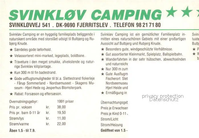 Fjerritslev Svinklov Camping Fliegeraufnahme Fjerritslev postalisch nicht gelaufen nach 1965 Werbekarte (keine Postkarte) Erhaltung siehe scans [FriedD77] Werbekarte (keine Postkarte) Frierer