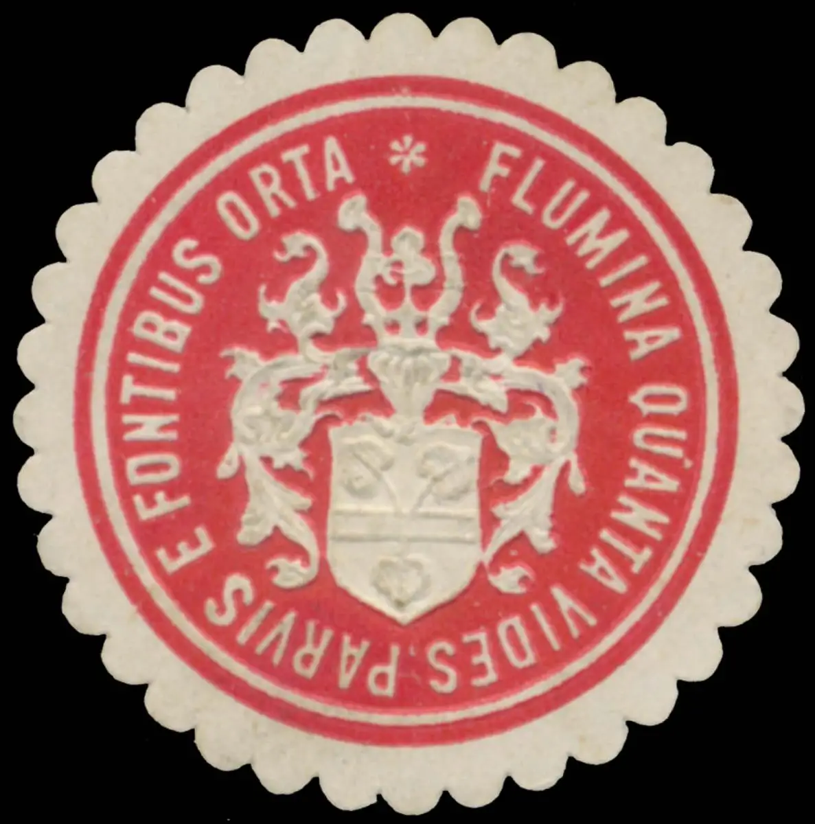 flumina quanta vides parvis e fontibus orta, Latein, Wappen, Größe/Zustand: 3 , guter Zustand, Original Verschluss-Siegelmarke aus Papier welche früher von Behörden, Firmen etc. zum Versiegeln der Briefe benutzt wurden