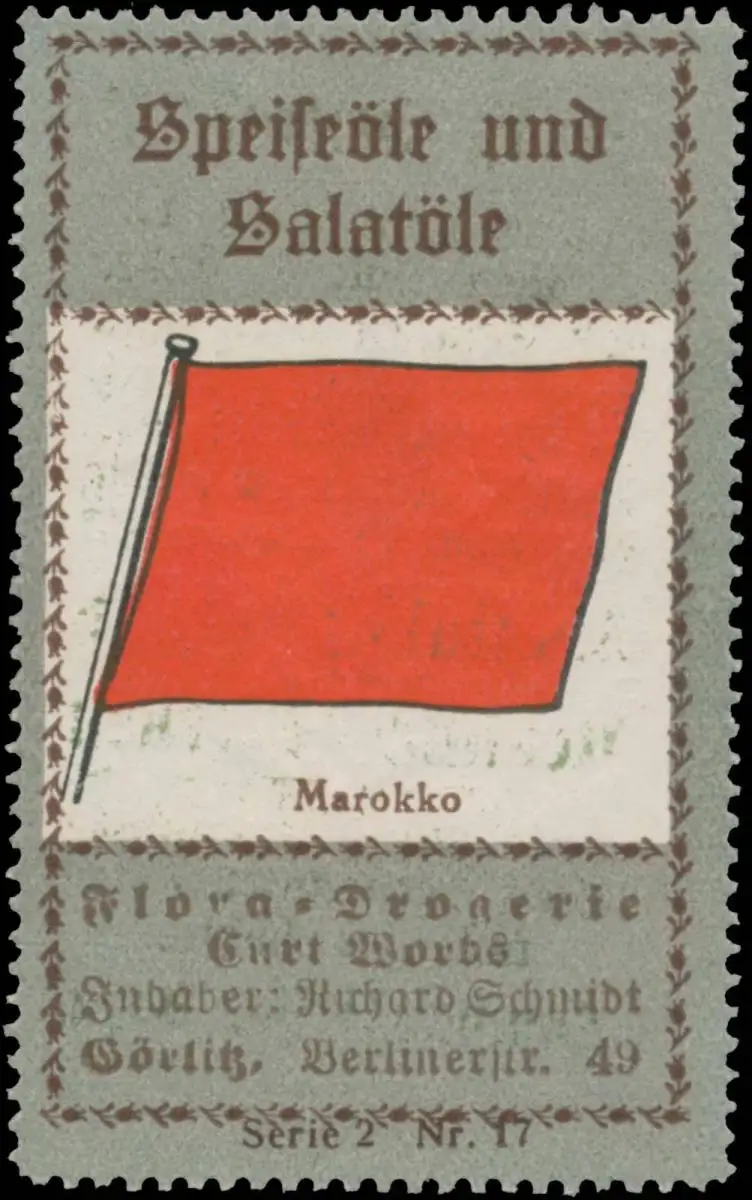 Speiseöle und Salatöle, Serie 2, Nr. 17, Flora-Drogerie, Curt Worbs, Inhaber: Richard Schmidt, Berliner Straße 49, Größe/Zustand: 6x4 , Fehldruck, guter Zustand, Original alte Reklamemarke die seinerzeit für die Werbung benutzt wurde