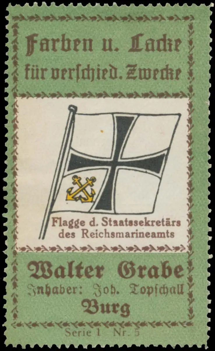 Farben und Lacke, Drogerie Walter Grabe, Inhaber: Joh. Topschall, Serie 1, Nr. 5, Größe/Zustand: 7x4 , guter Zustand, Original alte Reklamemarke die seinerzeit für die Werbung benutzt wurde
