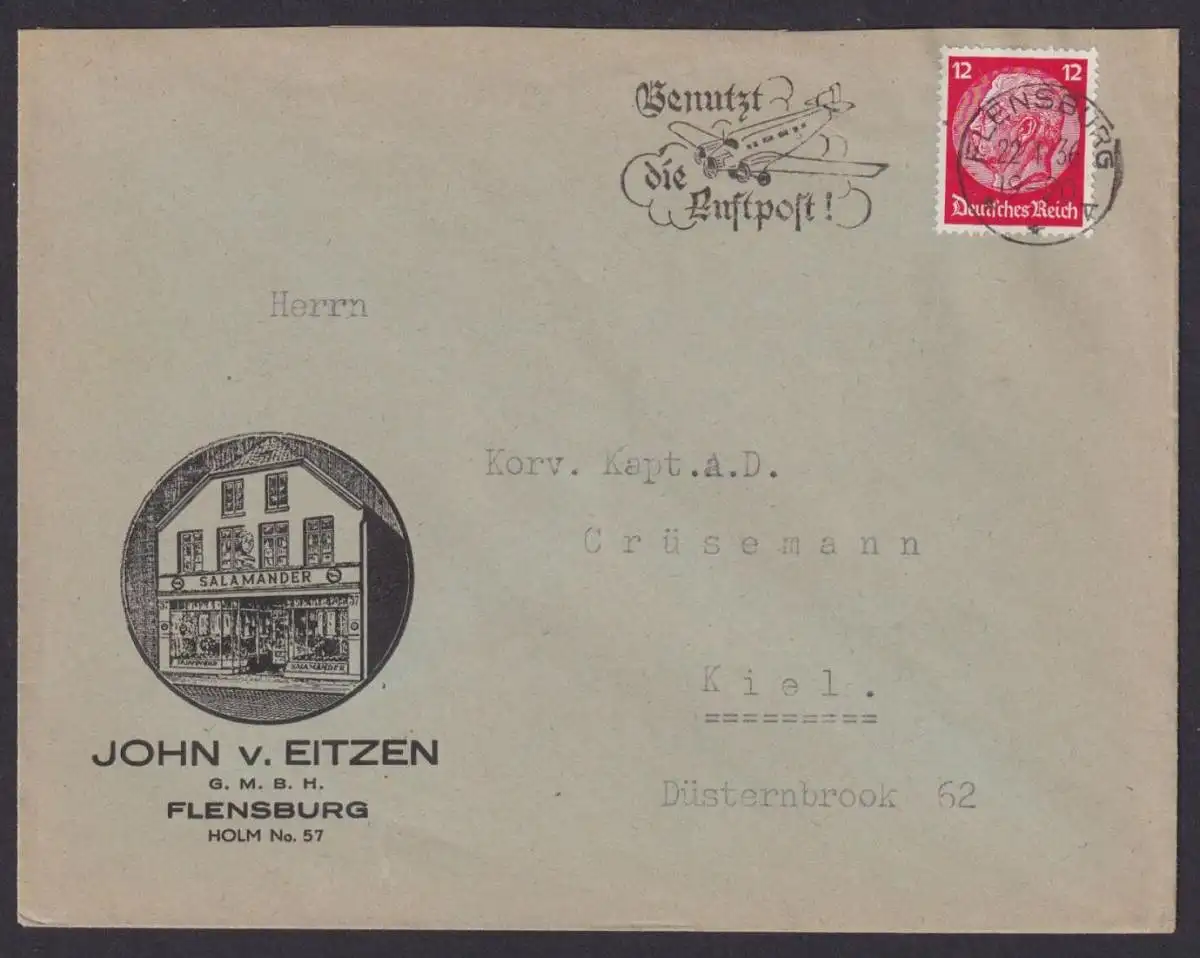 n. Kiel 22.01.1936 Reklame John v. Eitzen G.m.b.h. Flensburg