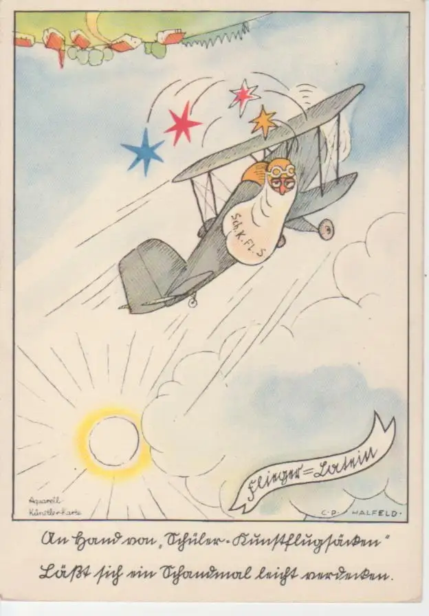Flieger-HUMOR Aquarell-Künstler-AK ngl 220.536