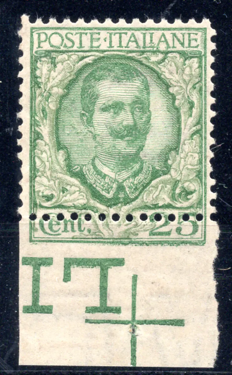 Floreale Cent. 25 Sorten verschobene untere Verzahnung Vollgummi - Floral Cent. 25 n. 200ec mit stark nach oben verschobener unterer Verzahnung b. von f. - Ungewöhnlich - Kat. 165 Cod. 145/13