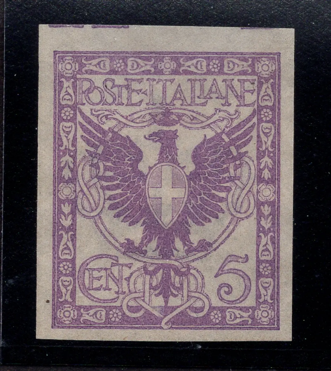 M - ohne Gummi - Floral Cent. 5 Nr. 70 Farbprobe in Flieder auf filigranem Papier, ungezähnt ohne Gummi wie gewohnt - einwandfrei - Kat. euro 250 Cod. 3466/WEB