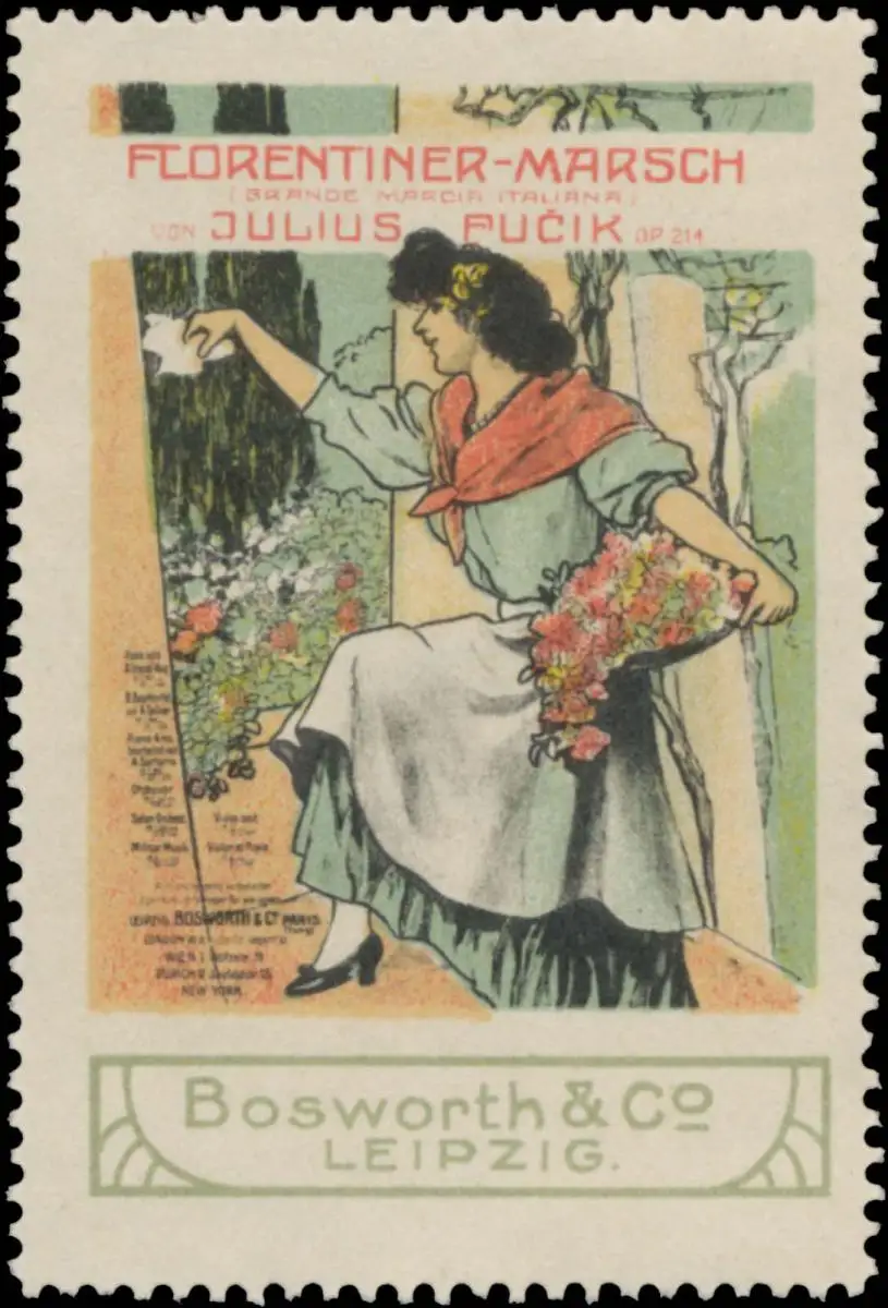 Julius Fucik, Musikverlag und Musikalienhandlung, Musik, Größe/Zustand: 6x4 , guter Zustand, Original alte Reklamemarke die seinerzeit für die Werbung benutzt wurde