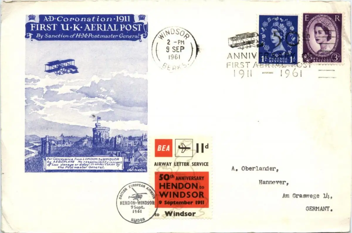 Flugpost 50th Anniversary Hendon to Windsor -95164