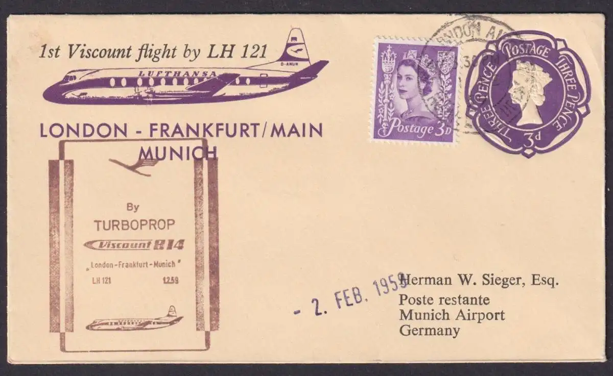 Flugpost Brief Air Mail Großbritannien Ganzsache 1st Viccount Flight Lufthansa