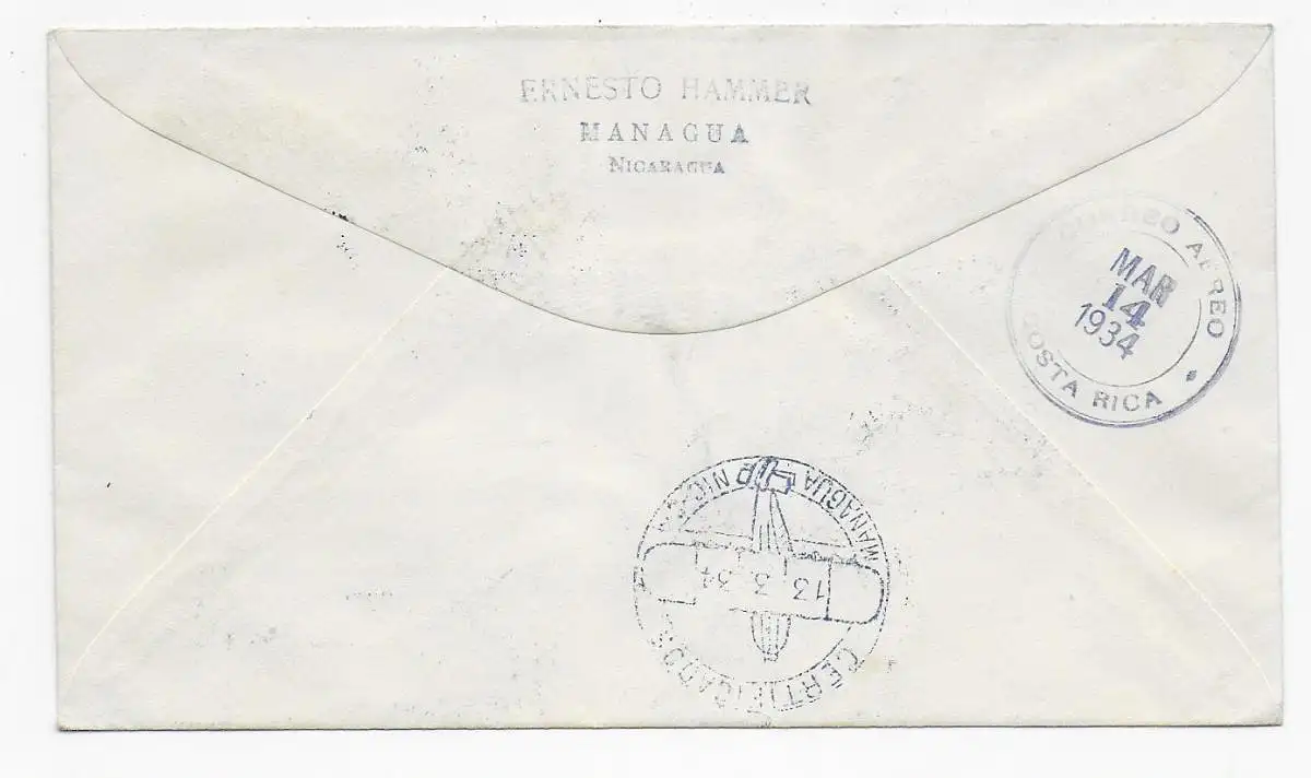 Flugpost Einschreiben FDC Managua nach San Jose, Costa Rica, 1934