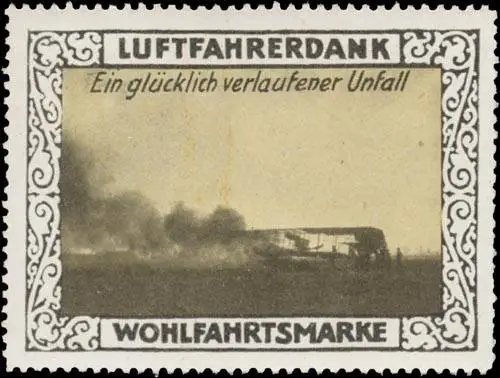 ein glücklich verlaufender Unfall, Luftfahrerdank Wohlfahrtsmarke, Flugmarke, Größe/Zustand: 4x6 , guter Zustand, Original alte Reklamemarke die seinerzeit für die Werbung benutzt wurde